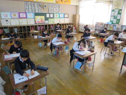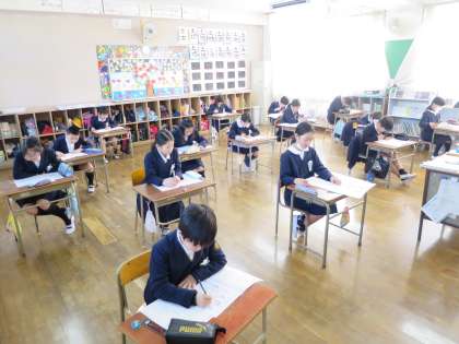 国語・算数・理科・社会で大阪市小学校学力経年調査を受けました。朝から頭をフル回転です。がんばって!!