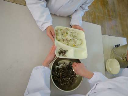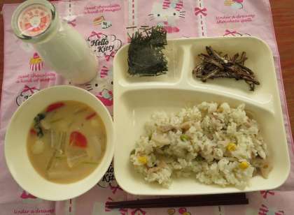 今日の給食は、正月の行事献立でした。れんこんのちらしずし・ぞう煮・ごまめで正月の気分を感じながら、おいしくいただきました。ぞう煮には、しらたまもちも入っていたのでおなかがいっぱいになりました!ごちそうさまでした(*^_^*)