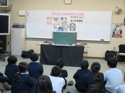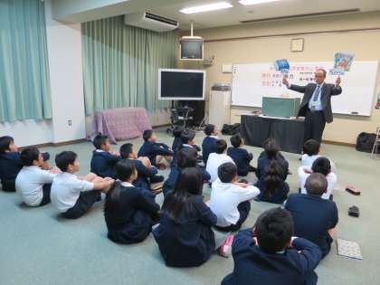 中央少年サポートセンターの方にお越しいただき、非行や犯罪のことや、ルールを守る大切さなどを教えていただきました。センターの方のお話を真剣に聞いてしっかり考えることができ、ほめていただきました。ありがとうございました。