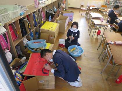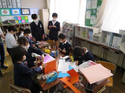 北鶴フェスティバルに向けて、たてわり班活動を行いました。ゲームに必要なものを分担して作っていきました。みんなでわいわい楽しそうです!