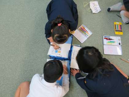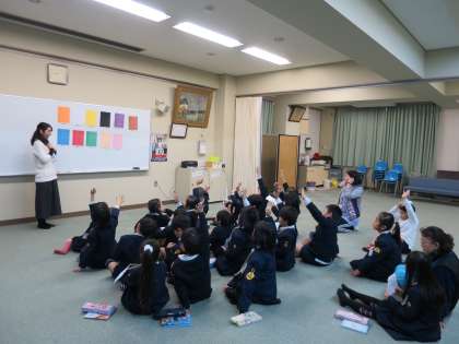 色の言い方を学習しました。英語での言い方を知っているようでも、C-NETの先生の発音をよく聞くと、少し違っているものもあることに気が付きました。自分の好きな色を紹介したり、いろんなゲームをしたりして楽しく学習しました。