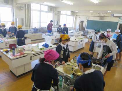 グループでお弁当のおかずを考えて調理実習をしました。さすが6年生!手際よく一品二品と作り上げていました。お弁当箱につめると何ともおいしそうです\(^o^)/
