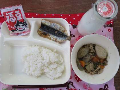 今日の給食は、節分の行事献立でした。「いわしのしょうがじょうゆかけ」や「いり大豆」がでました。「いり大豆」が嬉しい子どもたち、おはしで食べたり、手でつまんだり!ごちそうさまでした。