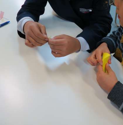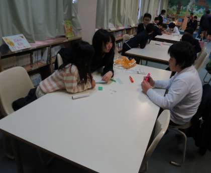 折り紙を使った紙工作のプロペラ作りや、絵本の読み聞かせも!楽しい時間になりました。入学式で待っているよ!