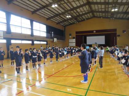 卒業をお祝いする会の時に歌う歌「ロードムービー」の練習をしました。歌の途中で、お祝いのことばもはさみます!みんなで心いっぱいお祝いします。
