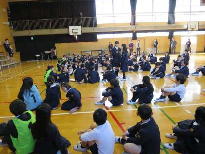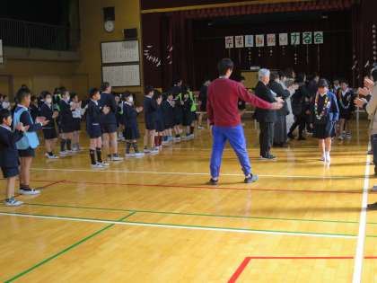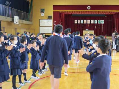 最後は、在校生と先生方、保護者の皆様の列の間を通って講堂を後にしました。みんなの心が結びつた温かい会でしたね。準備をがんばってくれた4・5年生の代表委員会のみなさん、5年生のみなさんも立派でした。