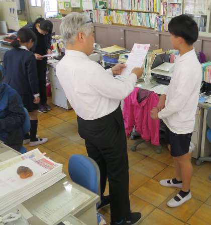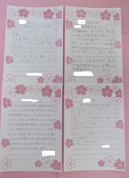 休み時間に、6年生が先生方に感謝の気持ちを込めて書いたお手紙を手渡しに来ました。丁寧な字で書いていることはもちろん、具体的なエピソードが込められた嬉しいお手紙でした。ありがとう!