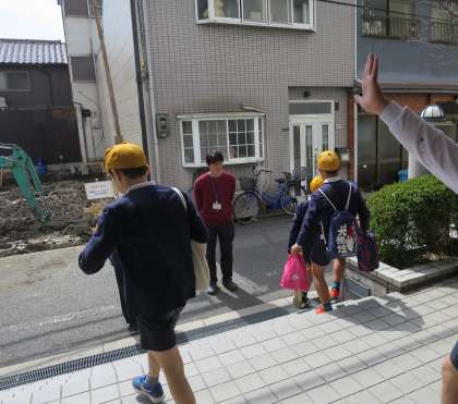 校長先生、教頭先生たちにお見送りをされて学校をあとにしました。新しい学年でもがんばってね!応援していますよ!