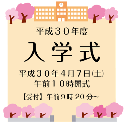 新1年生と保護者の皆様、受付(正面玄関入口)は9:20からです。10:00開式ですが、9:40には講堂の保護者席に着席をお願いします。