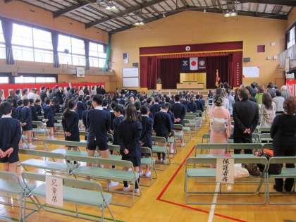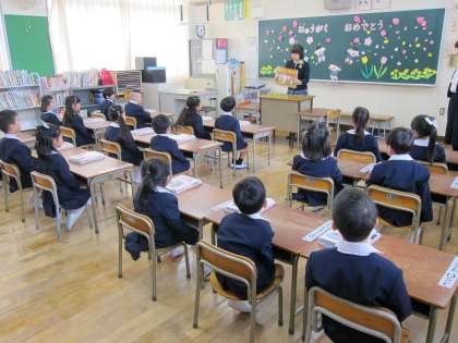全員で校歌を歌い、1年生は元気よく退場していきました。保護者会をしている間は、先生に紙芝居を読んでいただきました。月曜日からも元気に登校してきてね!