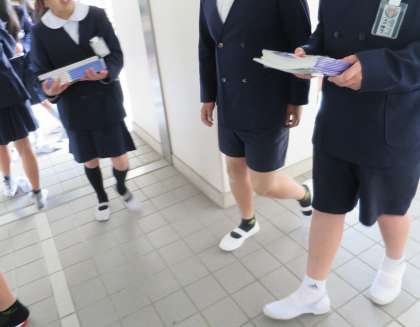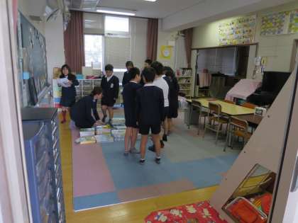 始業式の帰りに、教室に教科書を運びました。たくさんの種類がありますね!1番種類の多い5年生は、副読本も合わせてなんと14種類。みんなで運びました。