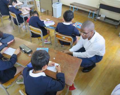 今日、新しいC−NETの先生が来られました。どきどき、わくわくしながら自己紹介ゲームをしたり、先生の自己紹介を聞いたりしました。質問タイムには、どんどん質問をしました。先生のことがたくさんわかりましたね!