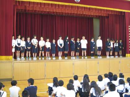 児童朝会で、代表委員児童の紹介がありました。一人一人が「がんばること」を具体的に発表できていて頼もしく感じました。代表委員のみなさん、1年間がんばってね!