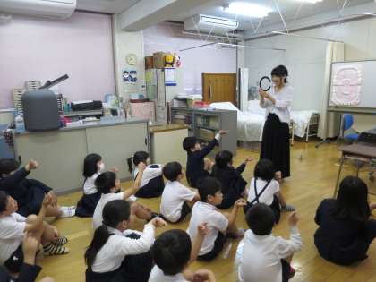 今週は、全学年で視力検査と聴力検査があります。先生に検査の仕方を教えていただいてからいよいよ測定です。検査の態度も待っている態度もよく、養護教諭の先生にほめていただきました。