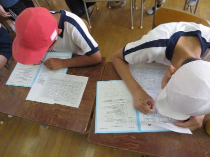 明日のたてわり班活動に向けて、班のリーダーが集まって準備をしました。班のメンバー全員分の名簿も作成しました。リーダーさん、明日はよろしくね。