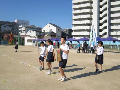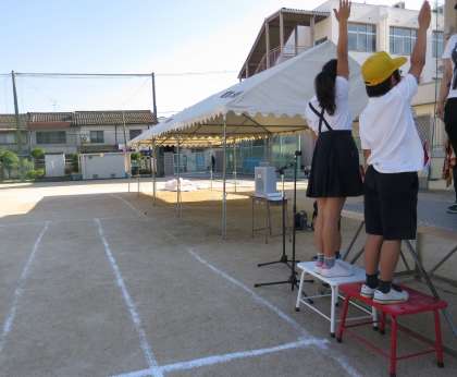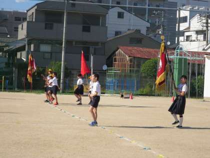 放課後に、代表児童が集まって開閉会式の練習を行いました。明日から始まる全体練習に向けてがんばっています。本番では、目の前でかっこいい姿をぜひ見てください!