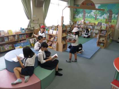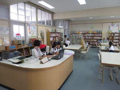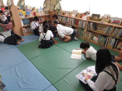 図書室にもたくさんの子どもたちが集まっていました。読書はもちろん、図書館補助員の先生とお話したり、先生のお手伝いをしたりすることも楽しいようです。