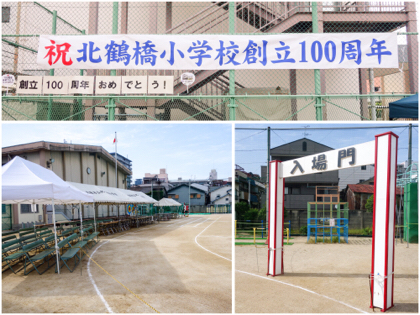 創立100周年を祝う大きな横断幕(上の写真)、東門入ってすぐのところに貼り出されています。100周年記念事業委員会の役員の方が作ってくださいました。ありがとうございます!
