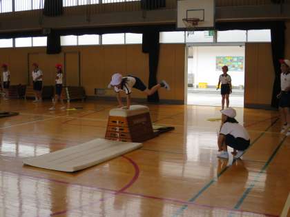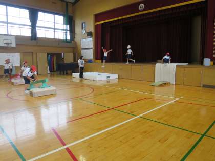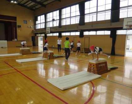 今日は、開脚跳びと大きな開脚跳びの練習をしました。しっかりと体づくりの運動をした後は、グループ別で練習タイムです。課題を克服できるように、練習練習!友達からのアドバイスも貴重です。