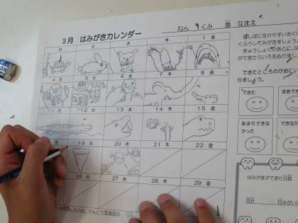 健康委員会では、7月以降の歯みがきカレンダー作りをしました。子ども達の想像力ってすばらしいです。みんな給食後に歯みがきをして、このカレンダーに色を塗っています。毎日違う絵に色がぬれて楽しいな!