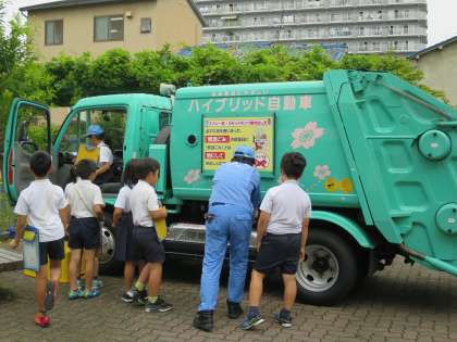 東部環境事業局からゲストティーチャーに来ていただき、ごみについて学習しました。パッカー車の役割や仕組み、ごみの分別の仕方など体験を交えて教えていただきました。すぐに生活に生かせることがたくさん学習しました。ありがとうございました。