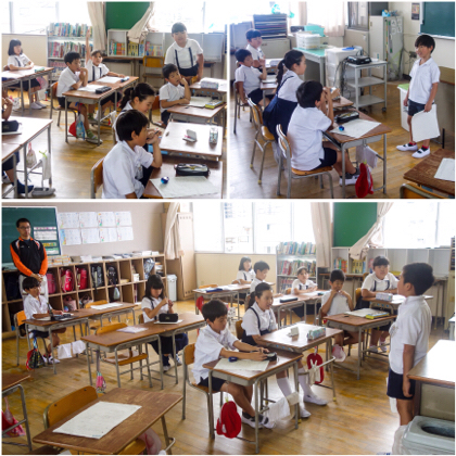 3時間目、国語の学習。一人一人前に立って、自分がうれしかったことについてスピーチしていました。