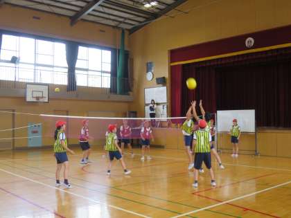 ソフトバレーボールの単元で体育科の研究授業を行いました。ボールをつなぐこと、つないだボールを相手コートに返すことなどをめあてに、個人練習やチーム練習です。チームでのふり返りの時間も大切にしながら、いろんな課題に取り組みました。できるようになったことがいっぱいで、達成感をたくさん味わえたようです。授業後はさわやかな笑顔の6年生でした。