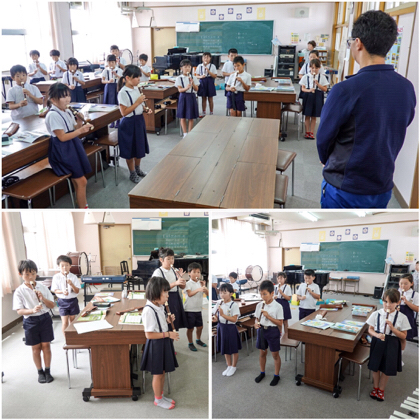 リコーダーは、練習曲集「笛星人」から3曲を演奏。3年生から始まったリコーダーの演奏、そろそろ慣れてきたころですね。