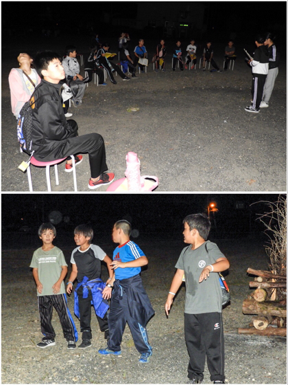 丸イスが用意されている、至れり尽くせりのキャンプファイヤー。快適すぎる!