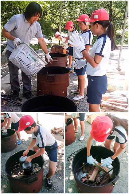 飯盒炊さんの準備も、同時進行で。うまく炊けるといいね。