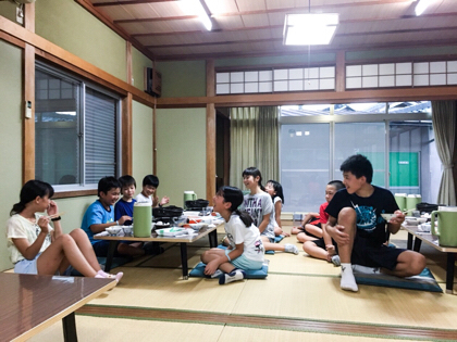 夕食の後は、お待ちかね、夜のつどい。星の観察・きもだめし・花火の三連発でお楽しみいただきましょう。