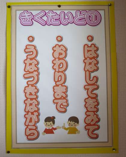 教室でも全学級で「聞く態度」についての掲示をして意識づけしています。