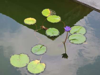 学校の中庭の池に鮮やかな紫色の水連の花が咲いています。気が付いていましたか?先週、管理作業員さんが植えていださいました。うまく育てば、池一面に水連の葉や花が広がるそうです。楽しみですね!