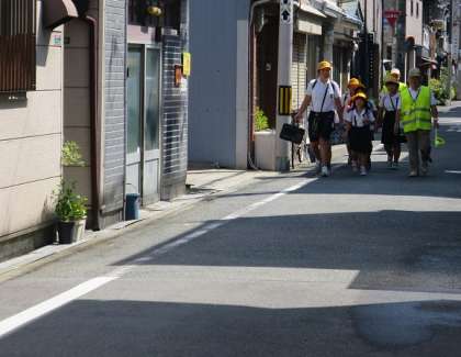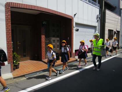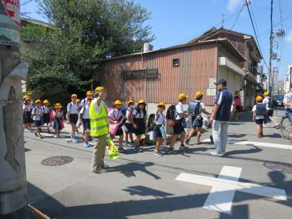 今朝は、登校時刻が変更になったにもかかわらず、北鶴橋見まもり隊の皆様が児童の登校に付き添ってくださいました。ありがとうございます。危険と思われる道は迂回して登校することにしました。