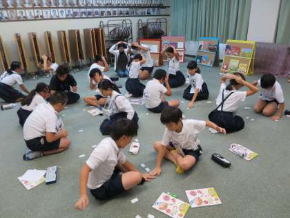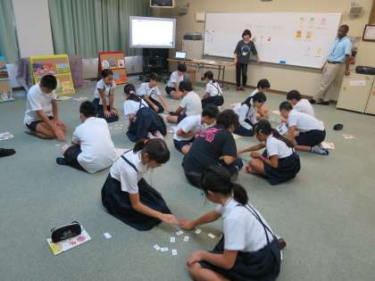 What subject do you like?を、繰り返し繰り返し学習しました。特にカルタでは、C−NETの先生の発音をよく聞いてペアで勝負です。最後の1枚まで真剣そのもの!