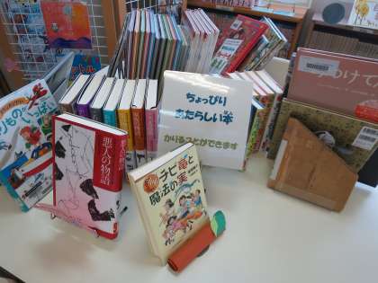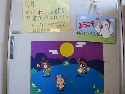 図書室には、新しく入った本や季節の本など、いろんなコーナーがあって、手に取りたくなる本がいっぱいです。たくさんの方々の支援のおかげで、読書環境がとても充実している図書室です。