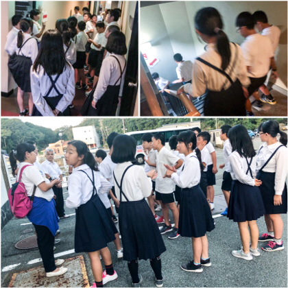 部屋に荷物を置いたら、すぐに避難訓練。非常口や非常階段を確かめながら、スムーズにホテルの外に避難です。怠りなく。