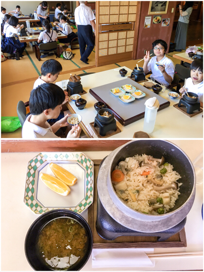 現地最後の食事は、鳥羽駅近くの「長門舘(ながとかん)」にて。おいしそうな釜飯です。