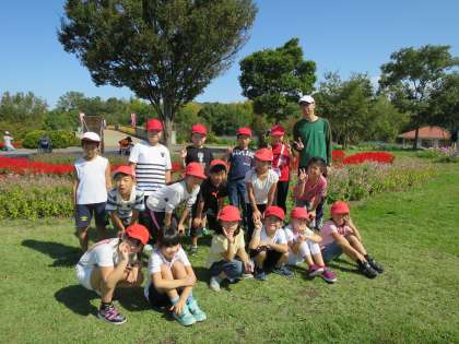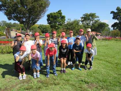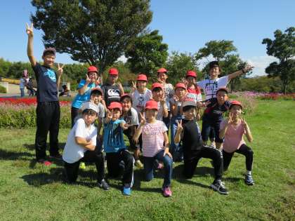 学年ごとに、担任の先生と一緒に集合写真を撮りました。はい、ポーズ!
