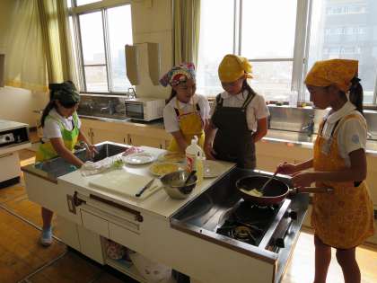 今日のクッキングクラブは、アイスクレープを作りました。クレープを焼いて、アイスやホイップクリームやキウイを盛り付けます。簡単にできるので、お家の人に作ってあげてもいいですね。下のレシピは部長さんと副部長さんで書いたもです。みんなに配ってくれました。