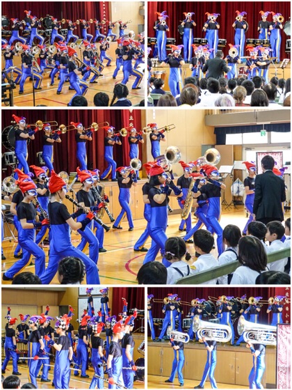 3時間目は、大阪市立文の里中学校吹奏楽部によるスペシャルコンサートでした。Jorker(ジョーカー)姿で颯爽と登場した部員のみなさん。マーチングショー「The Jorker's wild」で開幕です。ダイナミックな演奏、メリハリある揃った動き、かっこいいポーズ…。どんどん引き込まれていきました。