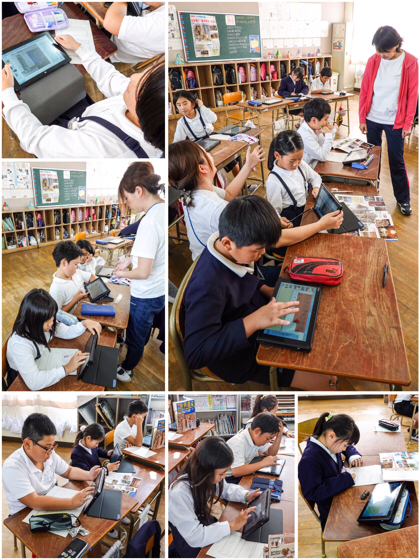 4時間目は、総合的な学習の時間。タブレット端末で発表用の資料を作っていました。