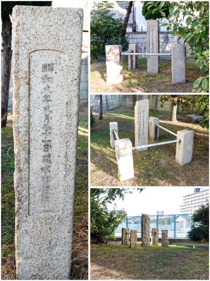 プールの南側に、「室戸台風慰霊碑(むろとたいふう いれいひ)」があります。児童のみなさんは、29日(月)の児童朝会の校長先生の話を覚えていますね。