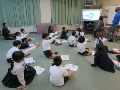国によって、じゃんけんのかけ声や数の数え方に違いがあるんですね。今日の外国語活動では、その違いに触れてみんなでいろいろな国のじゃんけんや数の数え方をやってみました。