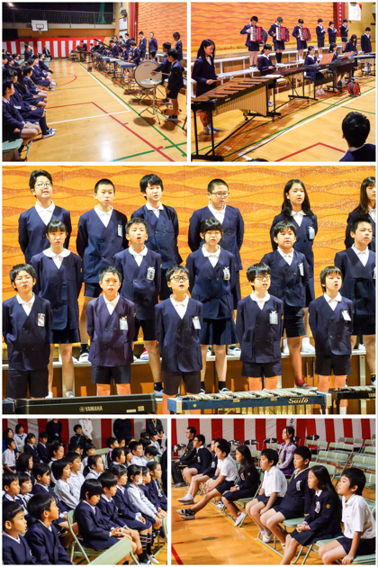 記念式典に参加しない1〜4年生にとっては、このリハーサルが5,6年生の合奏や“よろこびのことば”を見る機会になっています。