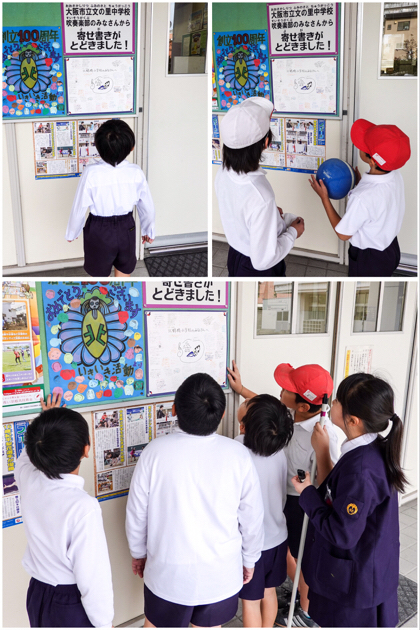 送り主は、大阪市立文の里中学校吹奏楽部のみなさんです。そう、10月の学校公開のときにスペシャルコンサートを開いてくれた、中学生のお兄さん、お姉さんたちです。