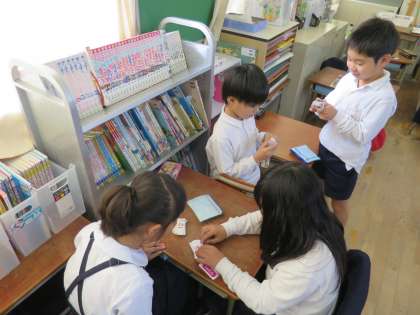 九九の暗記カードや、九九の表を手に、友達と一緒に九九に挑戦です。一緒に声を出して言ったり、問題を出し合ったり、一緒に唱えると楽しく覚えられそうですね。
