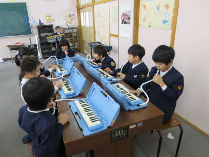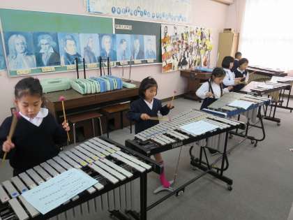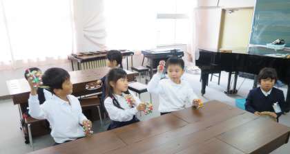 初めての合奏に挑戦します。何の楽器を担当するのかを決めたあと、担当の楽器ごとにグループになって練習をしました。素敵な「きらきらぼし」になるように完成めざしてがんばろうね♪
