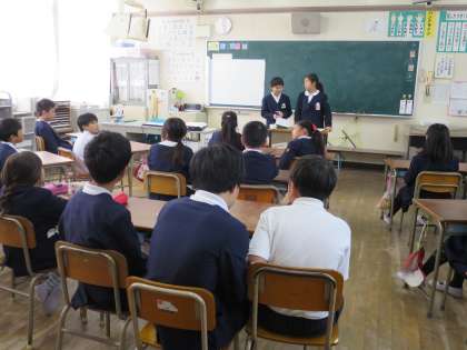 たてわり班のリーダーから、北鶴フェスティバルのお店が発表されました。その準備に向けて、リーダーを中心にルールや役割分担など、たくさんのことを話し合って決めました。