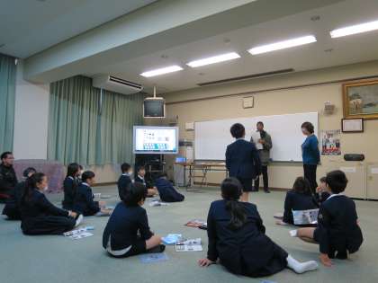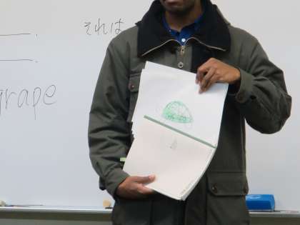一人一人がクイズにしたい絵を描いて、What's this?を使ったクイズを楽しみました。先生が少しずつ絵を見せて、わかったところで手を挙げます。英語で答えられる時は、英語で答えようとがんばっていました。